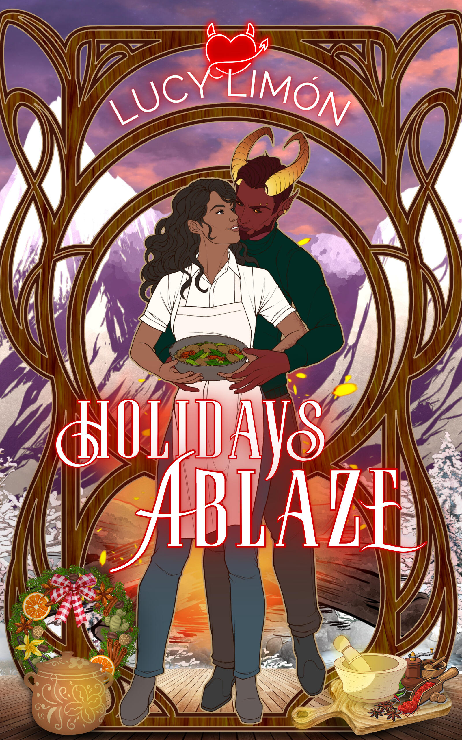 Atop a wintry mountain, a demon and a human discover a taste for each other.When an arrogant demon with a taste for the finer things meets a salty chef with an attraction to fire, sparks fly.Sofia, a talented chef whose culinary dreams have flamed out, is spending her holiday season hiding away in a cabin atop Mount Winter Bliss until her solo retreat is disrupted by the arrival of Samite, a maddeningly pretentious demon. Sofia is no stranger to facing down big egos in the kitchen. With plenty of salt and steely resolve, she sets the ground rules and strikes her first bargain with a demon.Samite, a demon whose business ambitions have been dashed, finds himself stranded atop Mount Winter Bliss at the mercy of an infuriatingly unhelpful human. He is hell-bent on escaping this mountain, and she would gladly whip him up a swift exit except for one major obstacle. An avalanche has buried the only road down the mountain, trapping them together. Their initial clash ignites a simmering tension, and as they navigate the close quarters of her tiny one-bedroom cabin, more bargains are struck, and the heat continues to rise.In Holidays Ablaze, indulge in the sizzling spice of Sofia and Samite's fiery encounter against the backdrop of a blissfully snowy mountain. Two opposites, plus snarky banter, grudging respect, and a sprinkling of 'yes, chef' add fuel to the fire.🔥Horned up for the Holidays is a series of three steamy, same-world, stand-alone novellas available on Kindle Unlimited. Purchase or download from Amazon today to escape to Winter Bliss.